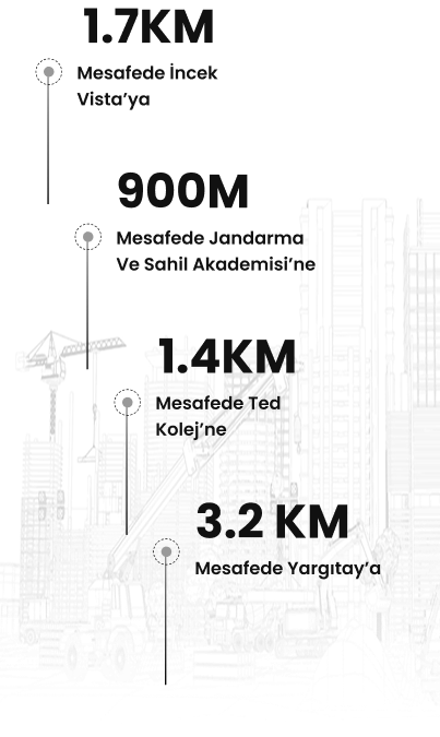 Asia Residence, İncek’in günden güne değer kazanan merkezi bölgesinde, önemli sosyal ve kamusal alanlara dakikalar içinde ulaşılabilen seçkin bir noktada konumlanmaktadır. Şehit Savcı Mehmet Selim Kiraz Bulvarı’na yakınlığı sayesinde sunduğu toplu taşıma hatlarına hızlı erişim ve çevresindeki diğer değerli yatırımlar ile proje, aileler için konforlu yaşamın adresi hâline gelirken; yatırımcılar için de güçlü bir finansal potansiyel taşır.
